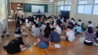今日の集会は内容盛りだくさん。児童会の「中学校連携」、集会委員会の「〇×クイズ」...