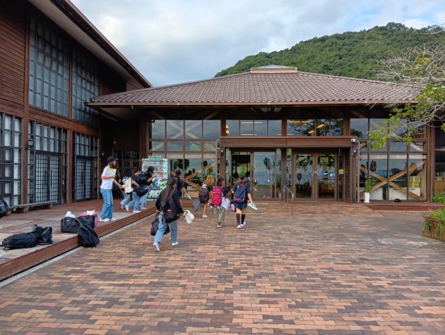 宿舎に到着しました。入所式を実行委員さんが進めてくれました。この後は、各部屋に入り、荷物を置いたら夕食です。