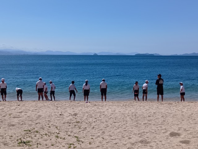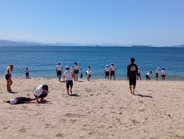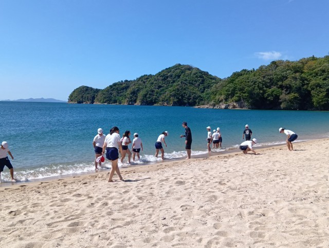 体験活動の二つ目は、浜遊びです。ひざ下まで海に入って遊びました。