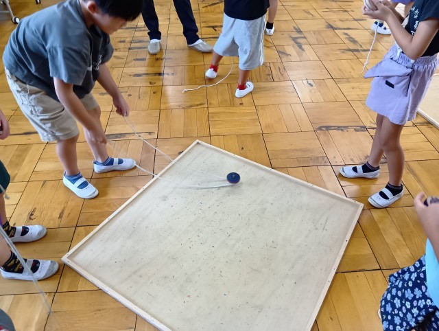 中休みには、「こま名人」が来てくださり、一緒にコマ回しをしていました。