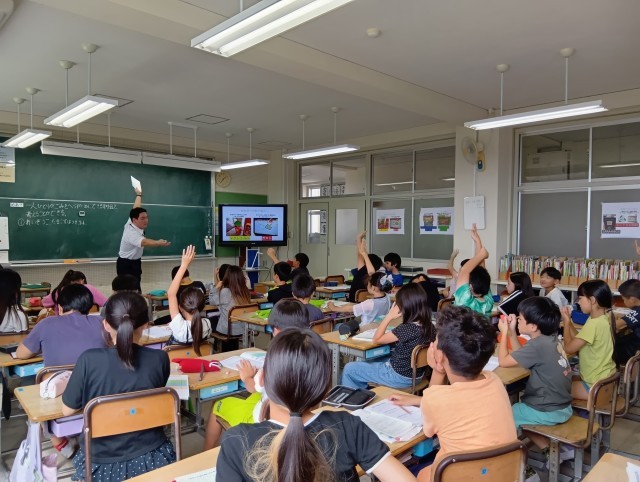 4年生で昨日、教育実習生の研究授業がありました。大学の先生や校内の先生方が参観する中、社会「ごみのゆくえ」の授業が行われました。全11時間の単元の最後の11時間目の授業で、子どもたちは今まで学んできたことを思い出したり、ノートを見返したりして、自分がこれからどのようにゴミを減らしていくかということを表明していました。
