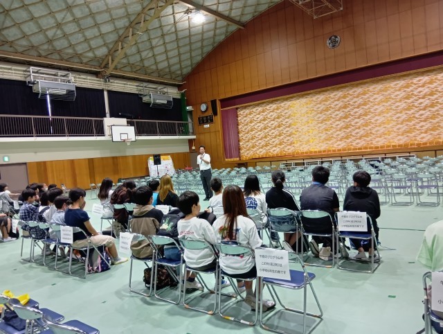 初めに見学の心得を中学校の先生から聞き、体育館に行きました。
