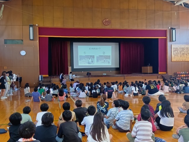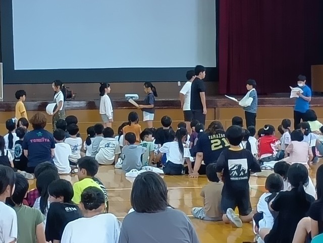 保健委員会からの発表と給食委員会から給食をよく食べたクラスの表彰がありました。