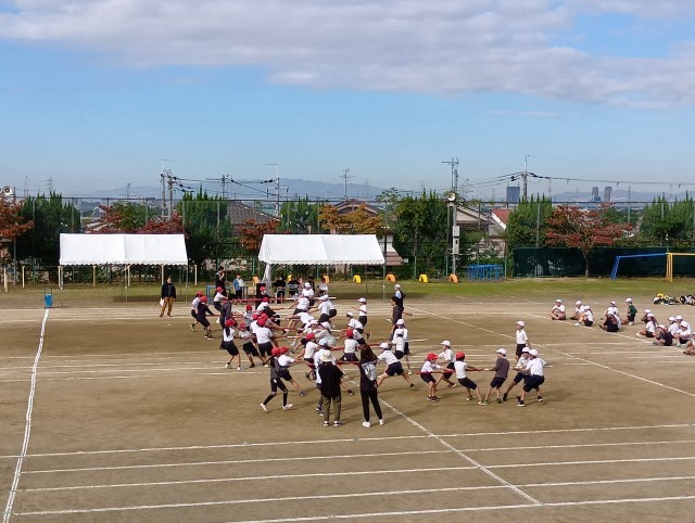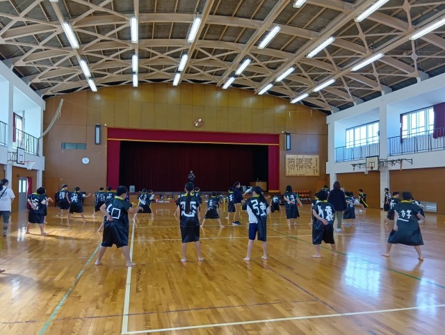 1時間目、5・6年生が団体競技の棒引きの練習をしていました。怪我無く安全に競技ができるように、棒の置き方などの注意を先生の実演を交えて説明していました。