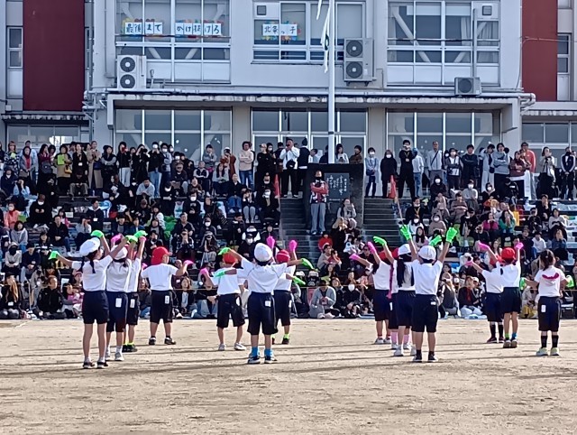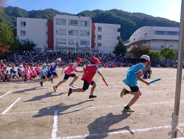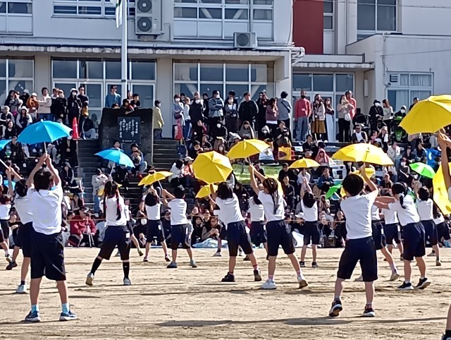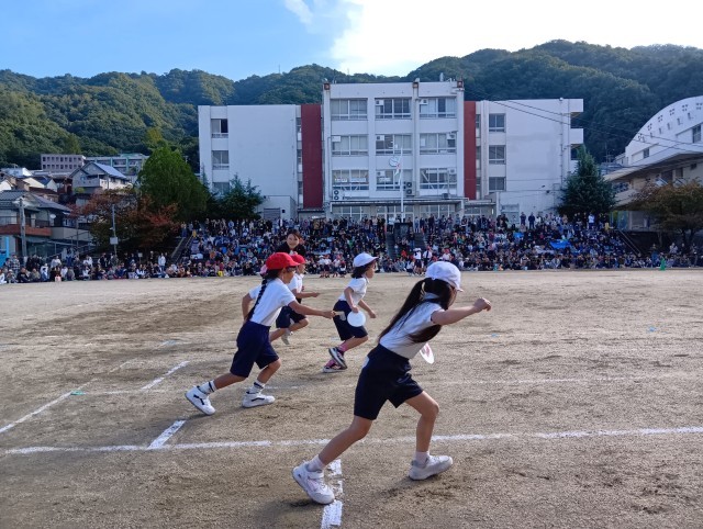 昨日は一日雨でしたが、今日は雨の心配なく運動会を行うことができました。曇り空が晴れて秋晴れのときもあり、気持ちよい運動会日和となりました。保護者の皆様、地域の皆様、ご来賓の皆様、今日は、最後まで子どもたちにご声援を送っていただきありがとうございました。