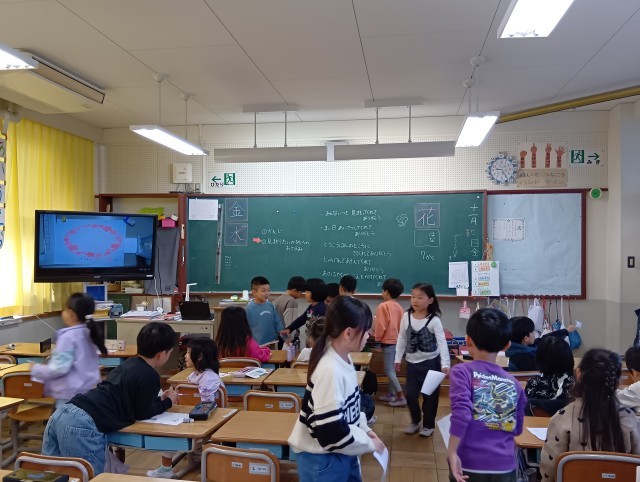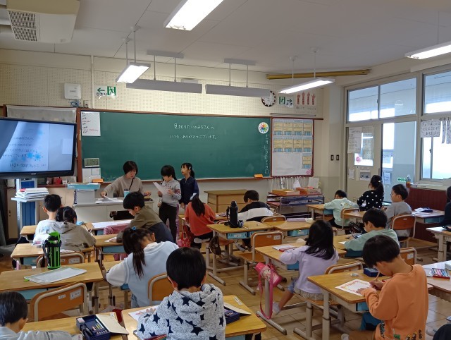 1年生は、見守り隊の方へのお手紙を書いていました。先生が黒板に例文を書いているので、それを写す子もいれば、自分で考えて書く子もいたり。1枚書けたら、2枚目のお手紙を書く子もいました。