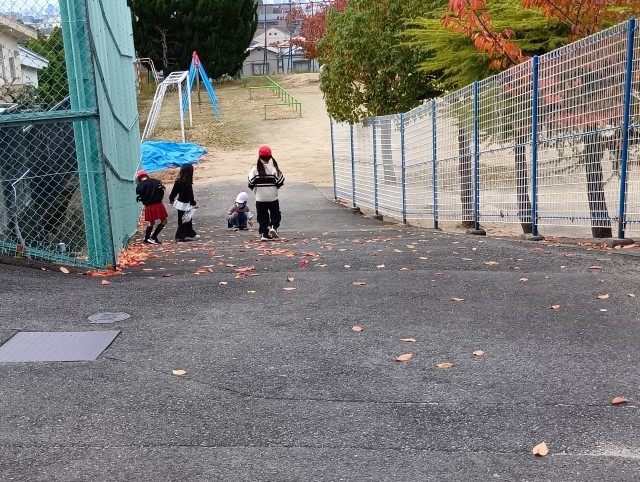 1年生は、生活科で紅葉した落ち葉や木の実を拾っていました。集めた葉や実を使って、何を作るのか楽しみです。