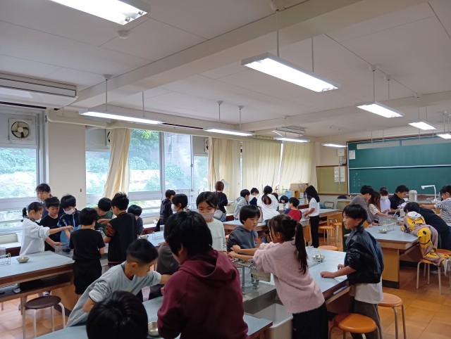 4年生は理科室で「もののあたたまりかた」の実験です。みんなで協力しながら準備していました。