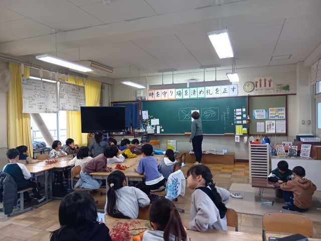 6年生は社会と算数、5年生は外国語、4年生は音楽、2年生は図工と算数の授業でした。