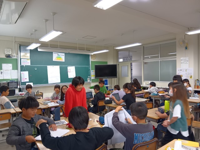 6年生は、外国語「My Best Memory ~小学校生活の一番の思い出を伝え合おう」で、発表するための準備をしていました。隣のクラスは社会で授業の終盤にカフートーで楽しく歴史用語を覚えていました。