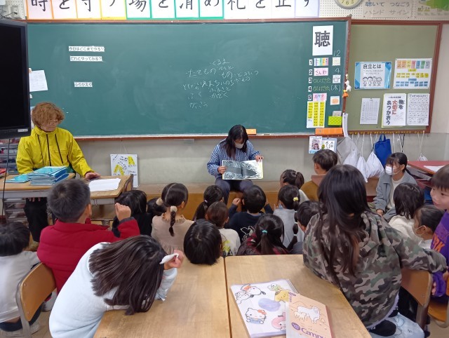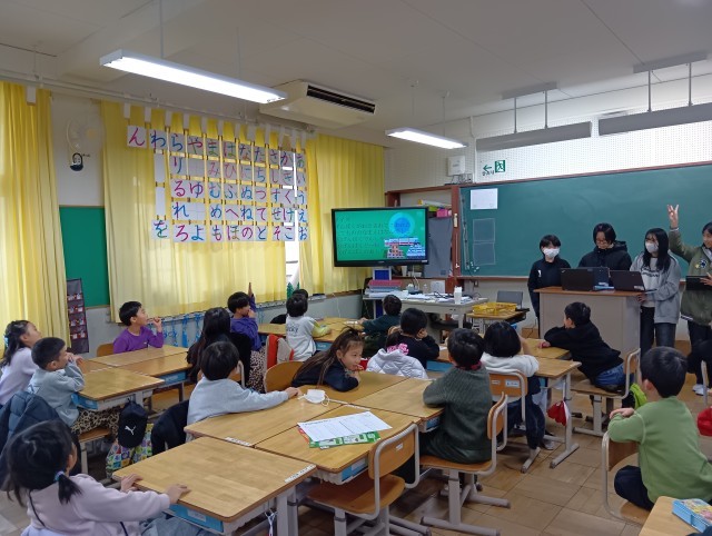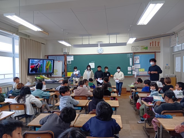 6年生が総合学習で学んできた平和学習について、全校の各教室を訪れて発表しました。各学年に合わせて、相手意識をもって、自分たちの伝えたいことをどのような工夫をすれば伝わるかを考えて発表していました。