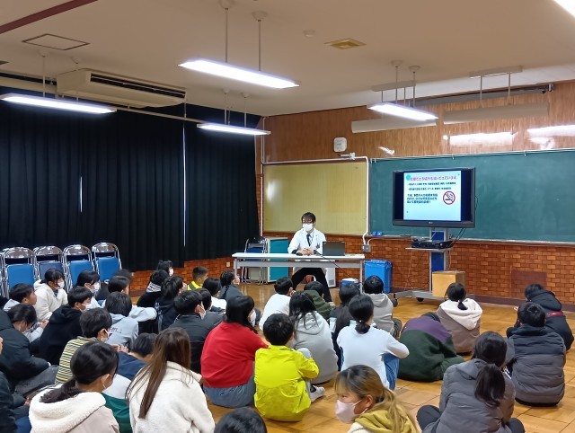 6年生が学校薬剤師の方を講師として、薬物乱用防止のための学習をしました。授業は、保護司会の方も参観されました。タバコの害について、詳しく学ぶことができました。