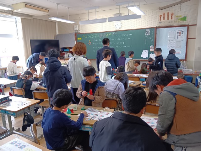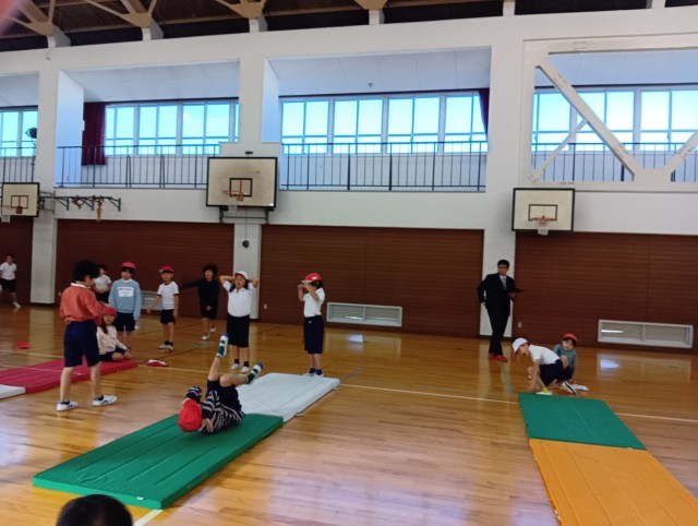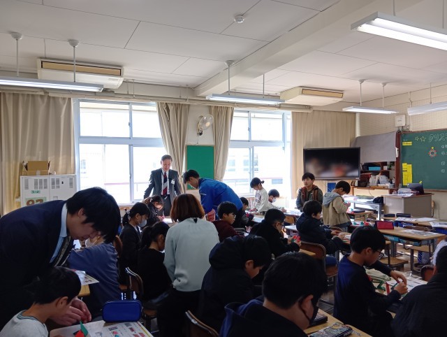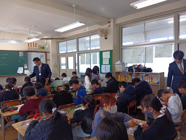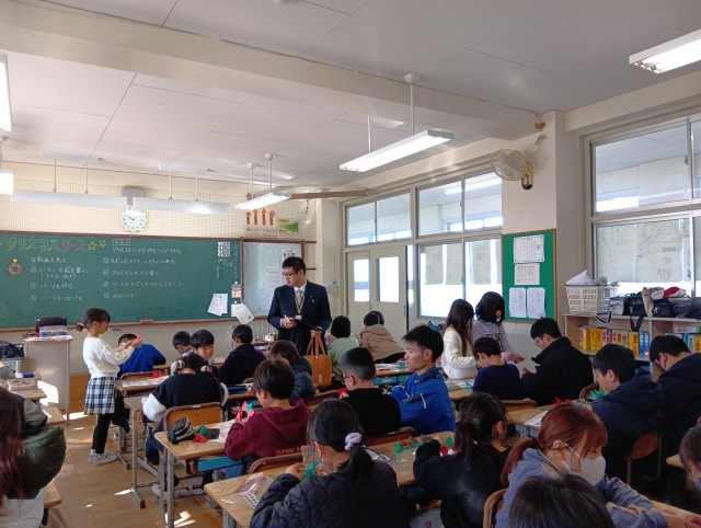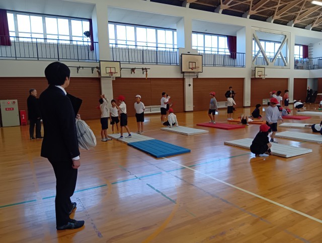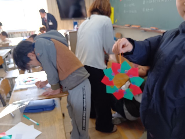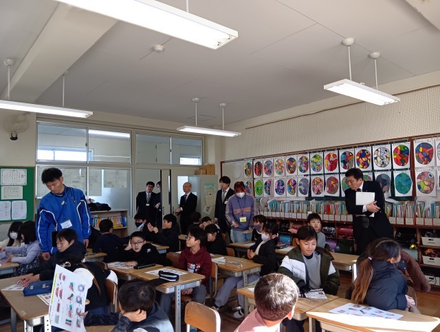 3年生の授業の様子を大東市教育委員会の指導主事の先生方が見に来てくださいました。1組は体育でマット運動をしていました。グループで熱心に練習をしていました。2組は図工でクリスマスリースづくりをしていました。折り方や組み方がなかなか難しく、指導主事の先生方も手伝ってくれました。