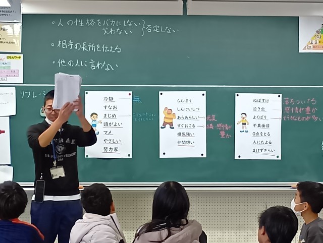4年生が道徳で「リフレーミング」について学習しました。自分の性格について長所と短所を考えて、短所をリフレーミングしました。自分でリフレーミングが難しい子は班の子に相談したり、辞書で調べたり、先生の用意したリフレーミング辞典を見たりして考えました。自分の性格をリフレーミングすることで見つめなおす機会となりました。