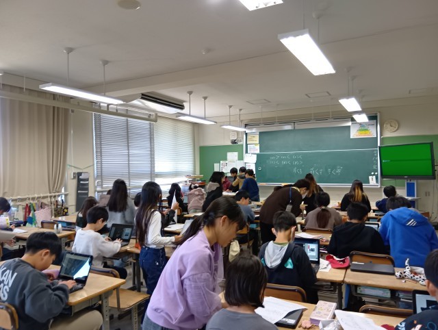 教室を覗いてみると、まとめのテストをしていたり、テスト返しと間違い直しをしていたり、持ち物の整理整頓をしていたりと来週の終業式に向けて学習の締めくくりをしていました。