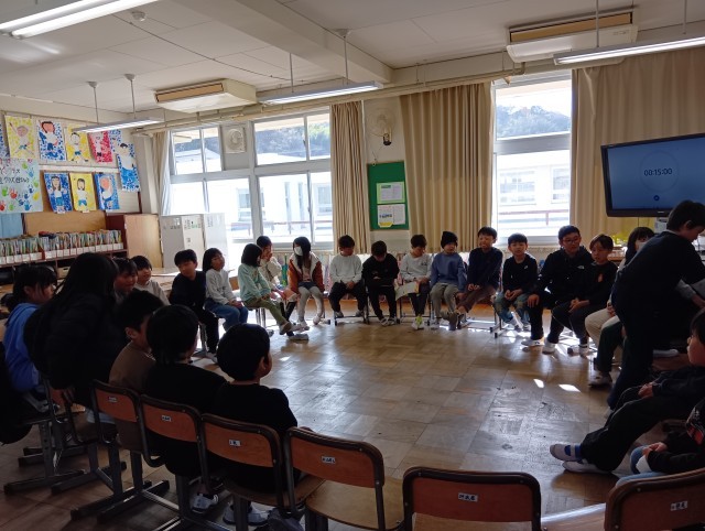 3年生は、お楽しみ会をしたり、国語の音読をしたりしていました。