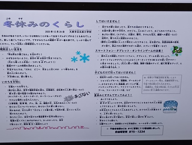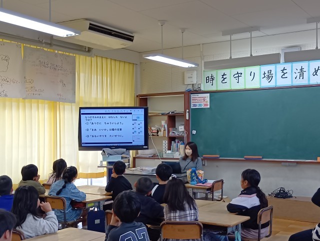 生活指導の先生から、冬休みのくらしをもとに、気をつけることを話をしました。