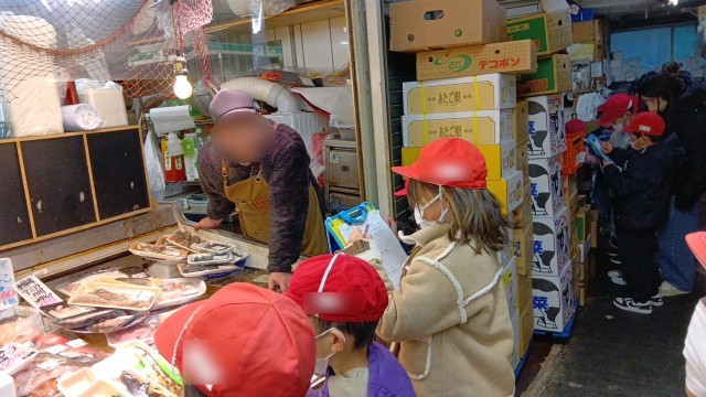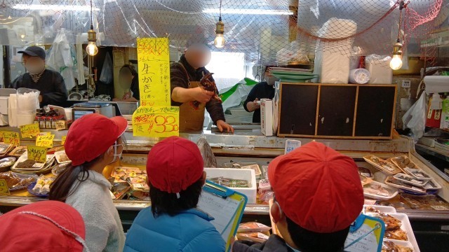 今日、2年2組さんが四條畷の商店街にある八百屋さんや魚屋さん、肉屋さんにインタビューに行きました。2年生は「食」をテーマに学習しています。