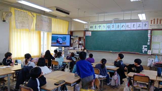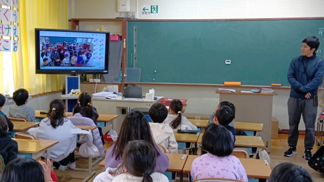 次に、児童会から2月の生活目標の紹介や来週の児童会行事についての話がありました。掲示委員会からは、昨年度も行った「ふわふわ言葉を集めよう」という取組みについての話がありました。最後に、2年生の群読発表を動画にとったものをみんなで見ました。大きな声ではっきりと音読できており、本当は直に聞き、拍手をしてあげたかったなと残念に思いました。