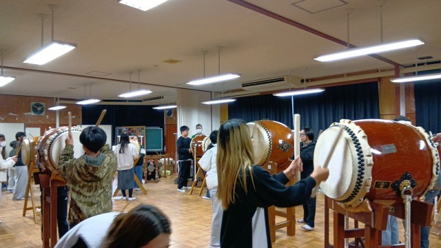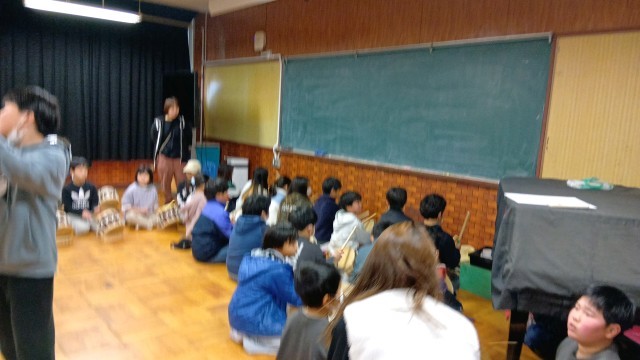 6年生は休み時間を中心に太鼓の練習をしています。今日は4年生と一緒に練習をしていました。