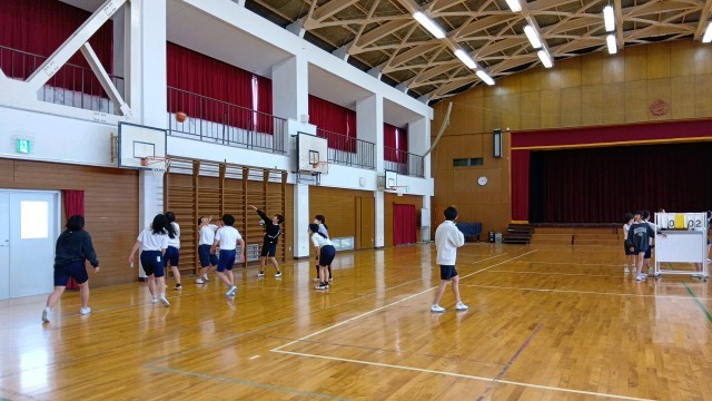 6年生は教室でアンケートをとっているクラスと体育館でバスケットボールをしているクラスがありました。