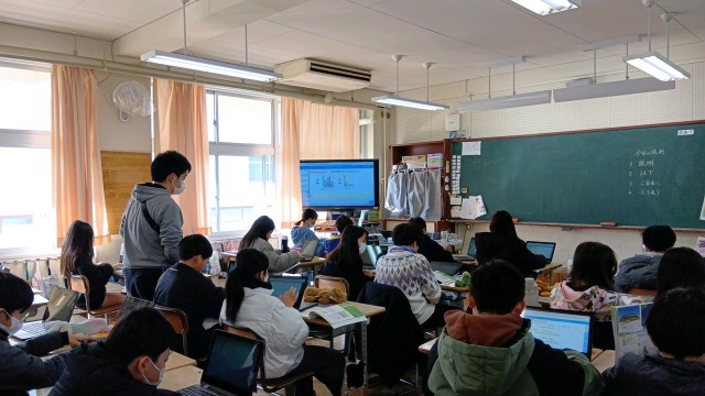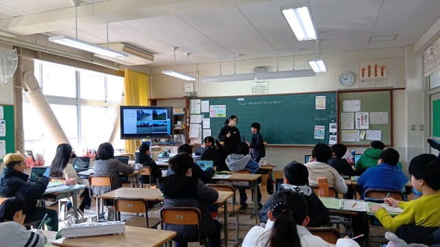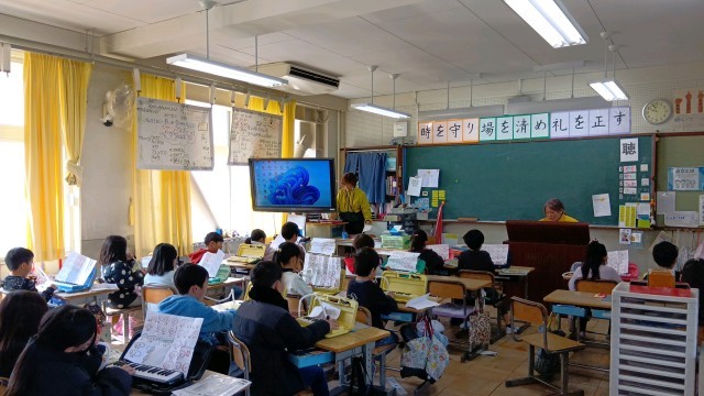 5年生は社会と外国語。社会はまず自分で教科書等を使って調べてみる、一人学びの場面でした。外国語はスピーチテストをしていました。