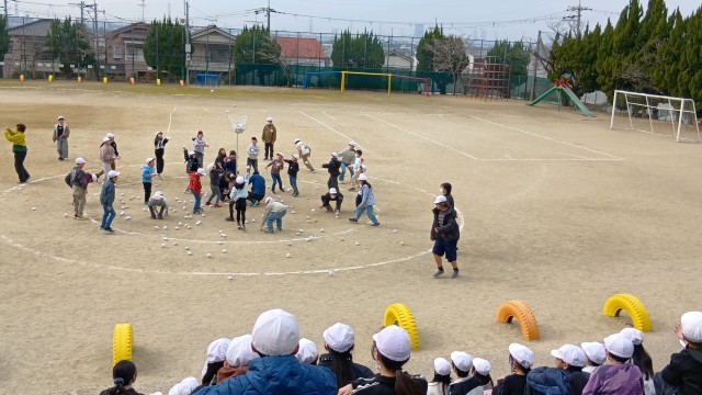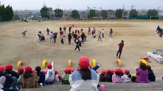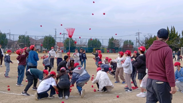 今日、児童会行事の玉入れがありました。きょうだい学年ごとに赤白で競い合いました。今日は気温がそれほど寒くなく、玉入れをしているときには上着をぬぐ子もいるぐらいのよい気候でした。児童会の子どもたちが考え、準備・進行をして、楽しいひと時を過ごすことができました。