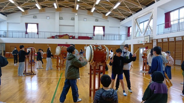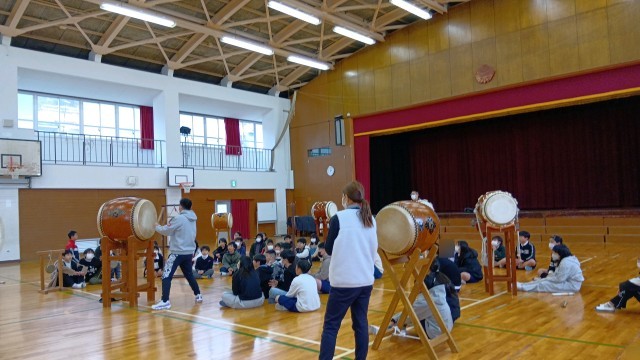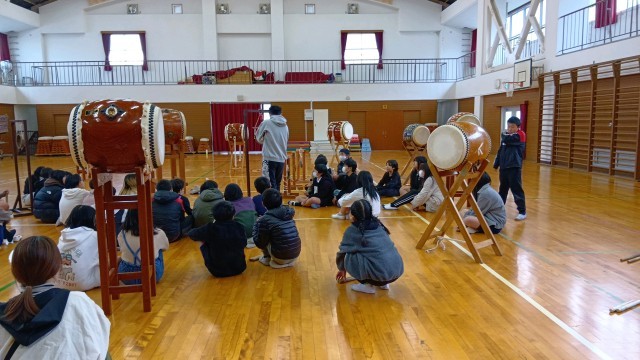 2/9 6年 出前授業 学年の気持ちを一つに 太鼓演奏