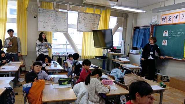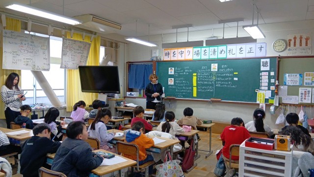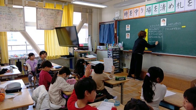 2年1組で、道徳の公開研究授業がありました。主題は「人との関わりに関すること」で、「転校」というオリジナル教材を使っての学習です。友情と家族といういずれも大切な価値が対立する場面を扱うモラルジレンマ教材で、「どちらも大切だから迷う」という状況で考え続けることの大切さも学べるものです。判断結果よりも判断理由に焦点を当てて、子どもたちに理由を語らせていました。