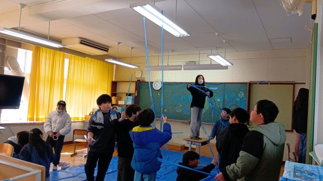 5年生は、「青のせかい」を作成中。どんな「青のせかい」が出来上がるのか楽しみです。