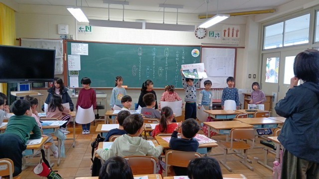 1年生は明日にある保育園・こども園5才児との交流の練習をしていました。小学校生活1年間を春夏秋冬に分けて紹介します。