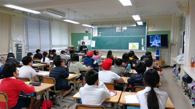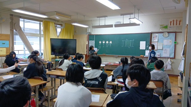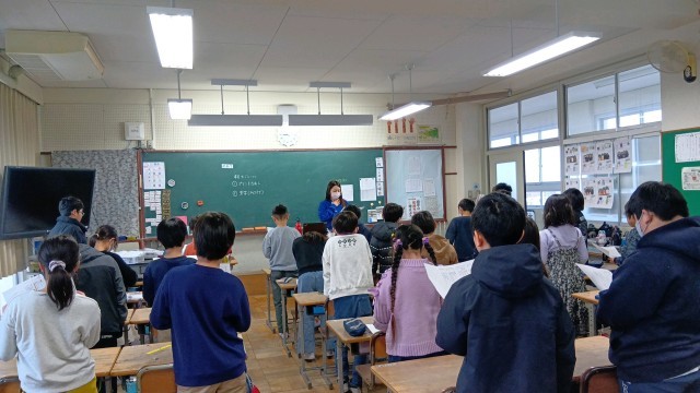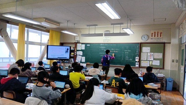2年生は算数。3年生はお別れ会の呼びかけの練習をしていました。4年生は理科。5年生は社会。6年生は算数で、自分の解き方を説明していました。
