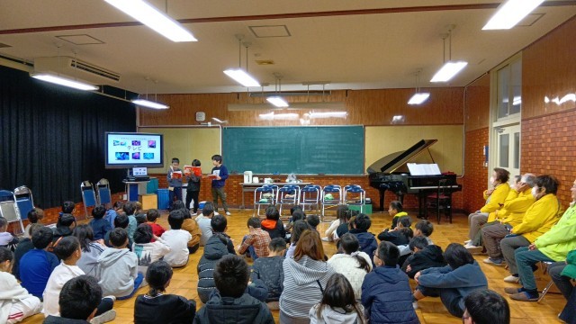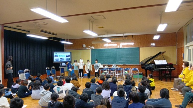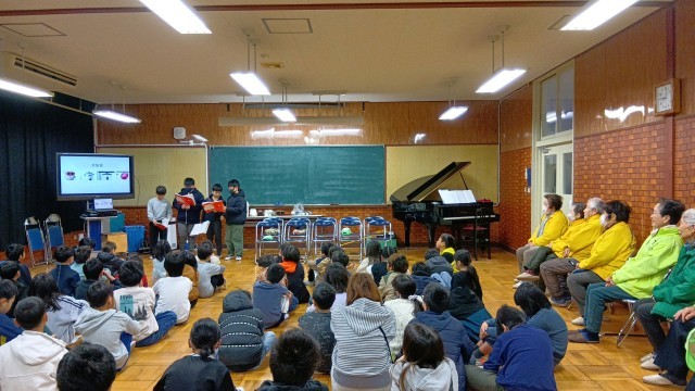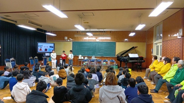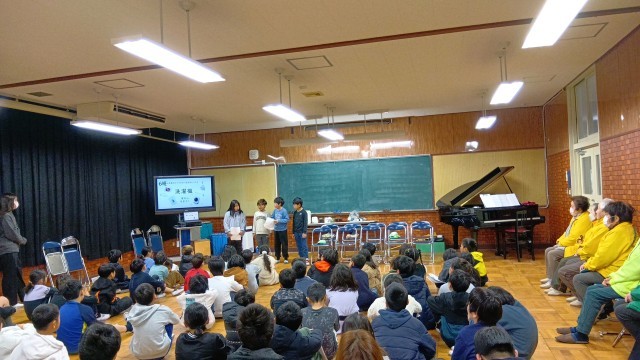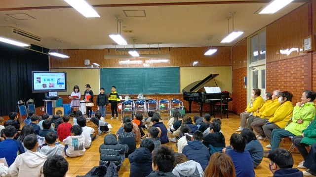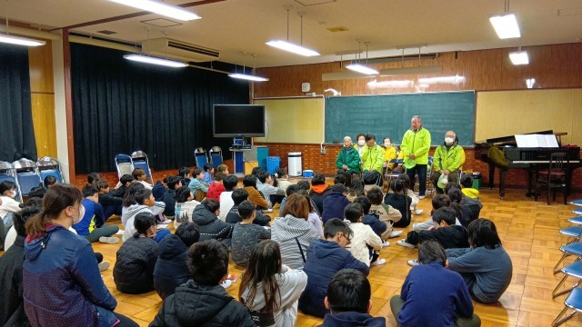 3年生が見守り隊の方をお招きして、国語「道具のうつりかわりを説明しよう」の単元で学習したことを発表しました。参観では、全部の班が発表しましたが、今回は各クラス3つの班までで、立候補で決めたそうです。どの班もしっかりとまとめられており、声のボリュームも適切でした。最後の日頃の感謝を伝えるために呼びかけと歌のプレゼントをしました。見守り隊の方からは、「いつも、みんなから元気をもらっている」ということと、道具のうつりかわりの発表から「昔を知ることで、未来を創造することにつながる」というようなお話もいただきました。見守り隊のみなさま、ありがとうございました。