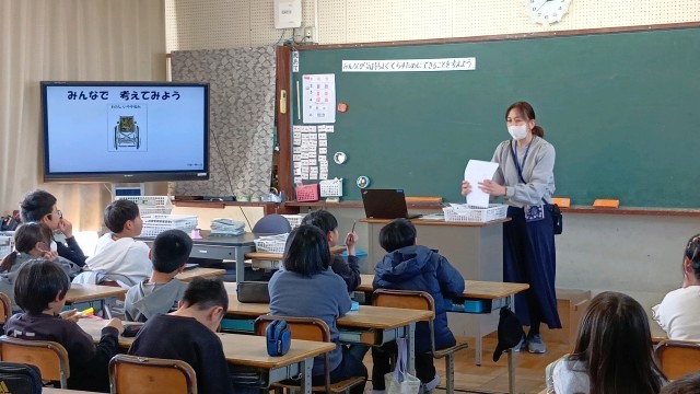 子どもたちは6時間目の授業でしたが、真剣に考え、意見を交わしていました。挙手していない子もワークシートに自分の考えをしっかり書きこんでいました。