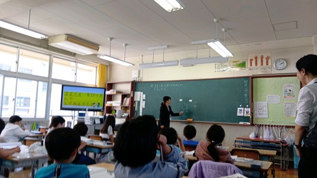 2年生は、算数でたしざんの筆算の学習でした。32+4を筆算で書くとどう書くのかを考えていました。