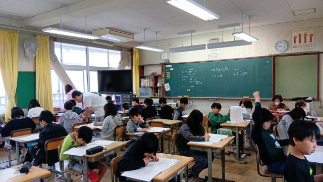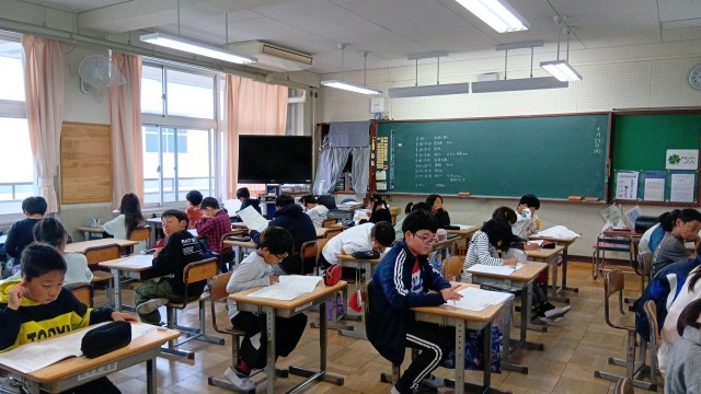 今日は、6年生が全国学力学習状況調査、5年生が大阪府のすくすくテスト、3・4年生が大東市の共通到達度確認テストと4つの学年が、昨年度までの学習の到達度をはかる力試しのテストをしました。どのクラスにいっても、みんな真剣にテストに向かって頑張っていました。