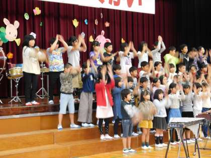 合唱「いいことあるさ」は、ボディーパーカッションに挑戦。