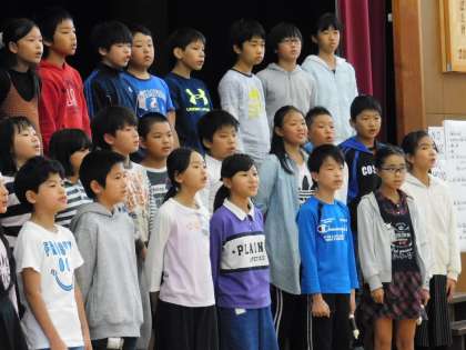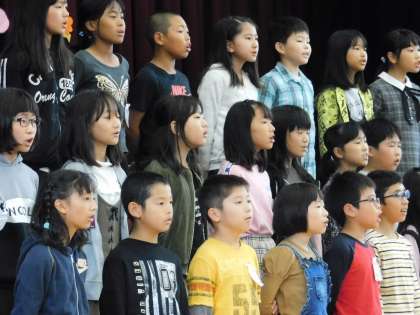 「この星に生まれて」。高学年では、伴奏も児童がすることがあります。
