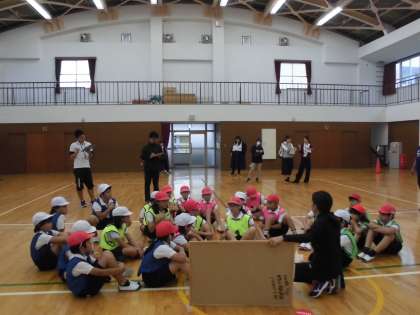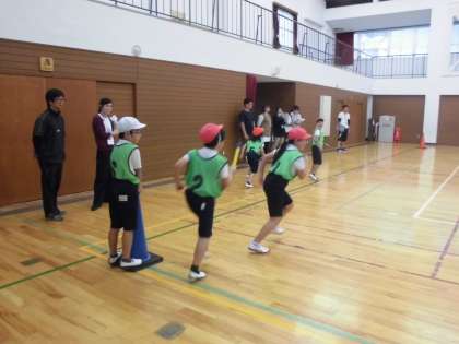 4−2で、体育の研究授業をしました。講師として、元大東市内小学校の校長先生で、大東市の授業力向上学校支援チーム員の先生をお招きして、ご指導いただきました。単元は、「リレー」。チームごとに、バトンパスの練習をして、少しでもタイムが縮まるように工夫していました。