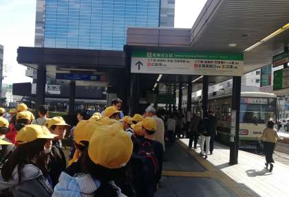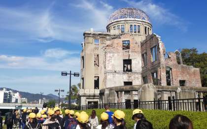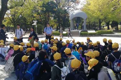 広島に到着後、市電で平和記念公園へ。身近に見る原爆ドーム。