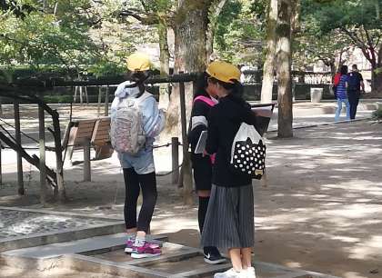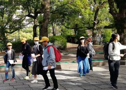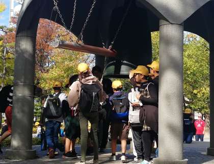 資料館をでたら、碑めぐりとインタビュー活動です。