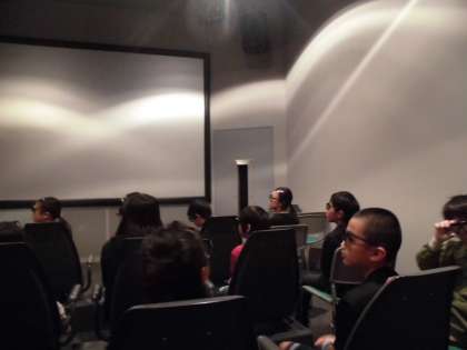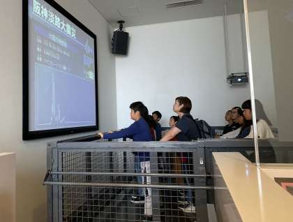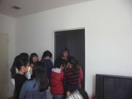 3Dメガネをつけて、災害について今までの被害の実態や、対応などを学びました。飛び出してくるようで迫力がありました。そのあと、火災の時に煙から逃れて入口へ脱出する体験をしました。人体に無害の煙が充満した部屋を、手探りで非常口を探すのは、とても不安な気持ちになりました。次に、地震の揺れの体験です。阪神淡路大震災、東日本大震災の地震の波形と同じ揺れを体験しました。つかまっているのがやっとです。今後来ると思われる東南海地震の予想の揺れも体験しました。