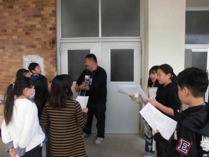 昼休みに校長室にいると、ギターの音と子どもたちの歌声が聞こえてきました。だんだん大きくなってきます。何事かなと見てみると、11月9日(土)の『ふれ愛フェスティバル』に出場する子どもたちが、瀧崎先生と練習をしているのでした。どんなステージになるか楽しみです。北条ふれ愛フェスティバルは、11月9日(土)、正午開始。場所は、いいもりプラザです。