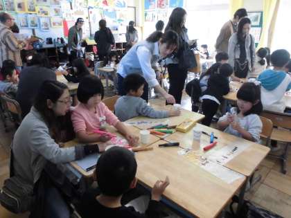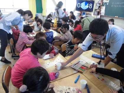 1年生は、図工でした。おうちの方にもすこーし手伝ってもらいました。