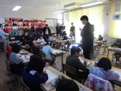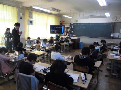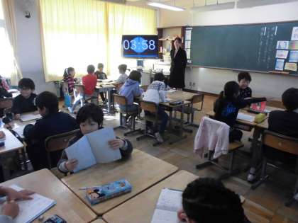 2年生の教室です。1組は、かけ算の分掌問題。2組は、国語で、ドラえもんの道具を考えていました。楽しそうなのがあって、ほしいなと思いました。