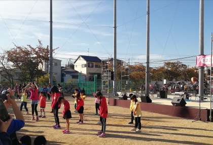 ふれ愛フェスティバルでは、ステージとで店が楽しめます。ステージでは、小さな子どもから中学生までが、ダンス教室、音楽教室で練習を積んだ成果を、存分に見せてくれました、