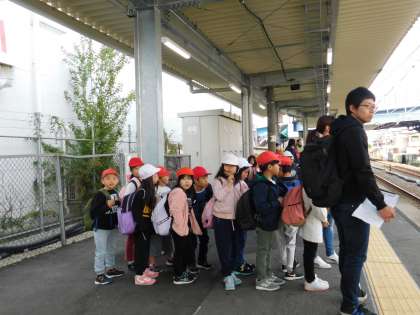 春の遠足は、2年生と一緒に行きましたが、今回は1年生単独です。しかも電車です。子どもたちは、班で係を決めてめあても決めて、やる気満々のスタートです!昨年児童会の空き缶回収のお金で買った腕時計も活躍しています。