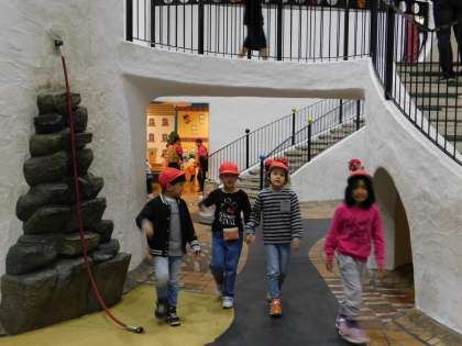 キッズプラザの中は、他の学校からもたくさんの人が来ていました。北条小の1年生、ルールを守って楽しく遊べていましたよ。