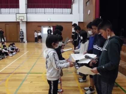 給食委員会からは、食べようグランプリの表彰が、掲示委員会からは作品募集の案内がありました。