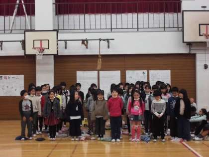 引き続き、平和集会をしました。各学年が、それぞれ平和学習で学んだことを発表していきました。1年生は、『かわいそうなぞう』を学習し、戦争は人の命も動物の命も奪うことを知りました。2年生は、『平和ってすてきだね』を学習しました。沖縄慰霊の日に与那国島の1年生が語った話がもとになっています。3年生は、『ちいちゃんのかげおくり』を学習し、戦争が家族をもバラバラにするという悲惨さを知りました。